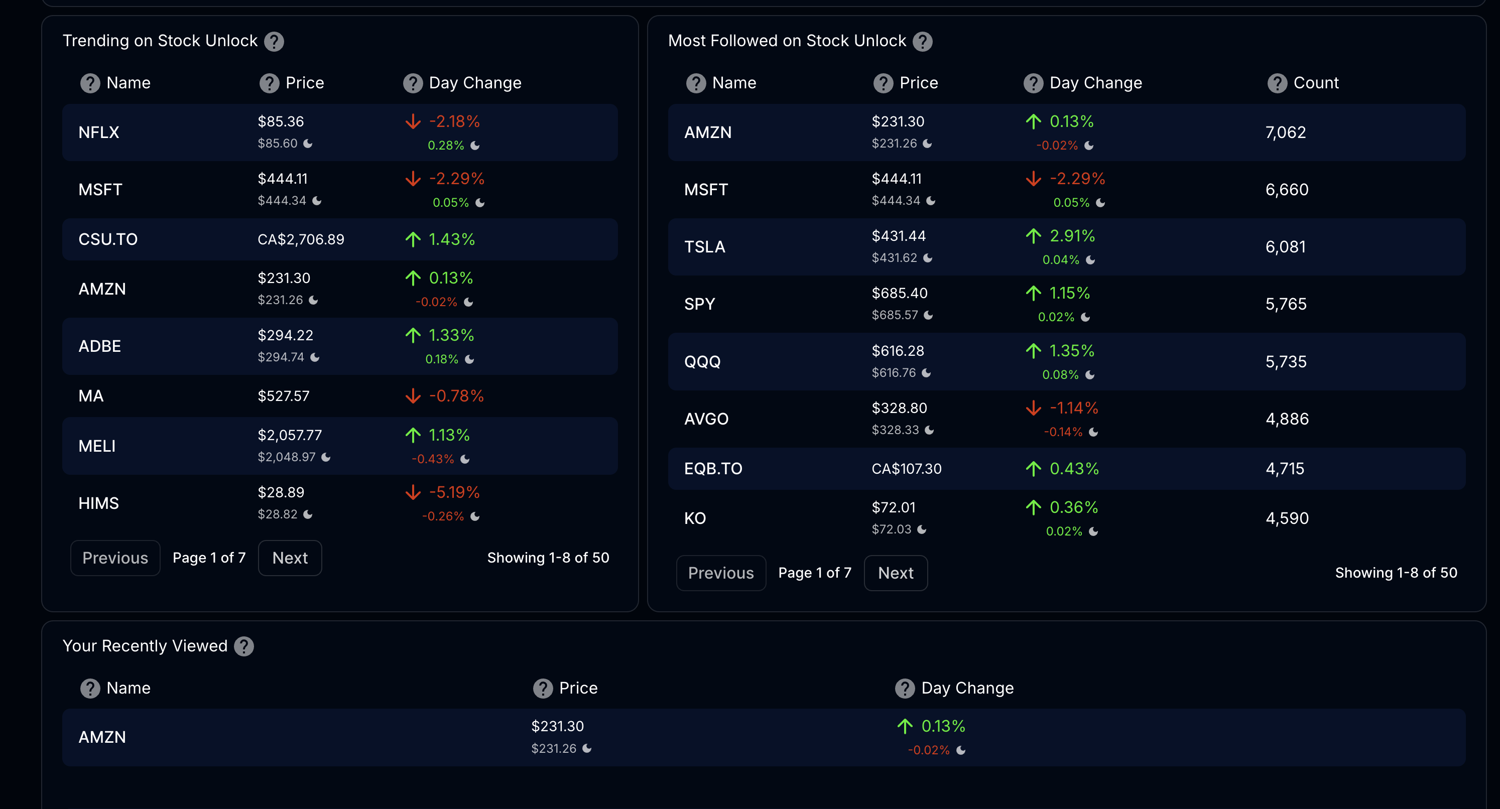 We also made a small but useful improvement on the Home page: - Trending, Most Followed, and Recently Viewed tables now show after-hours and pre-market price changes, so you’re not guessing outside market hours.